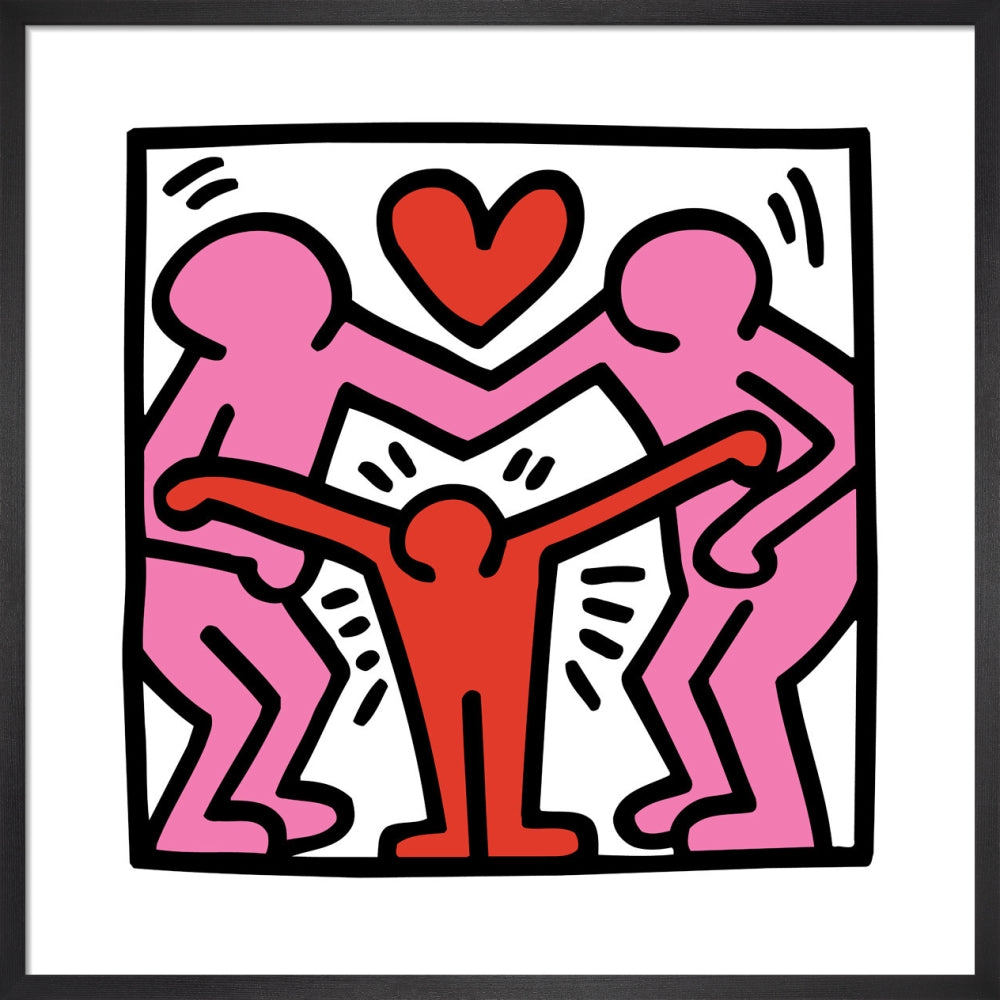 Sans titre (famille) met en scène deux figures parentales embrassant leur enfant avec amour, comme l'indique le cœur rayonnant situé au-dessus de leur tête. Keith Haring a souvent produit des œuvres à caractère politique, mais il souhaitait également communiquer l'importance de l'amour et de la gentillesse.